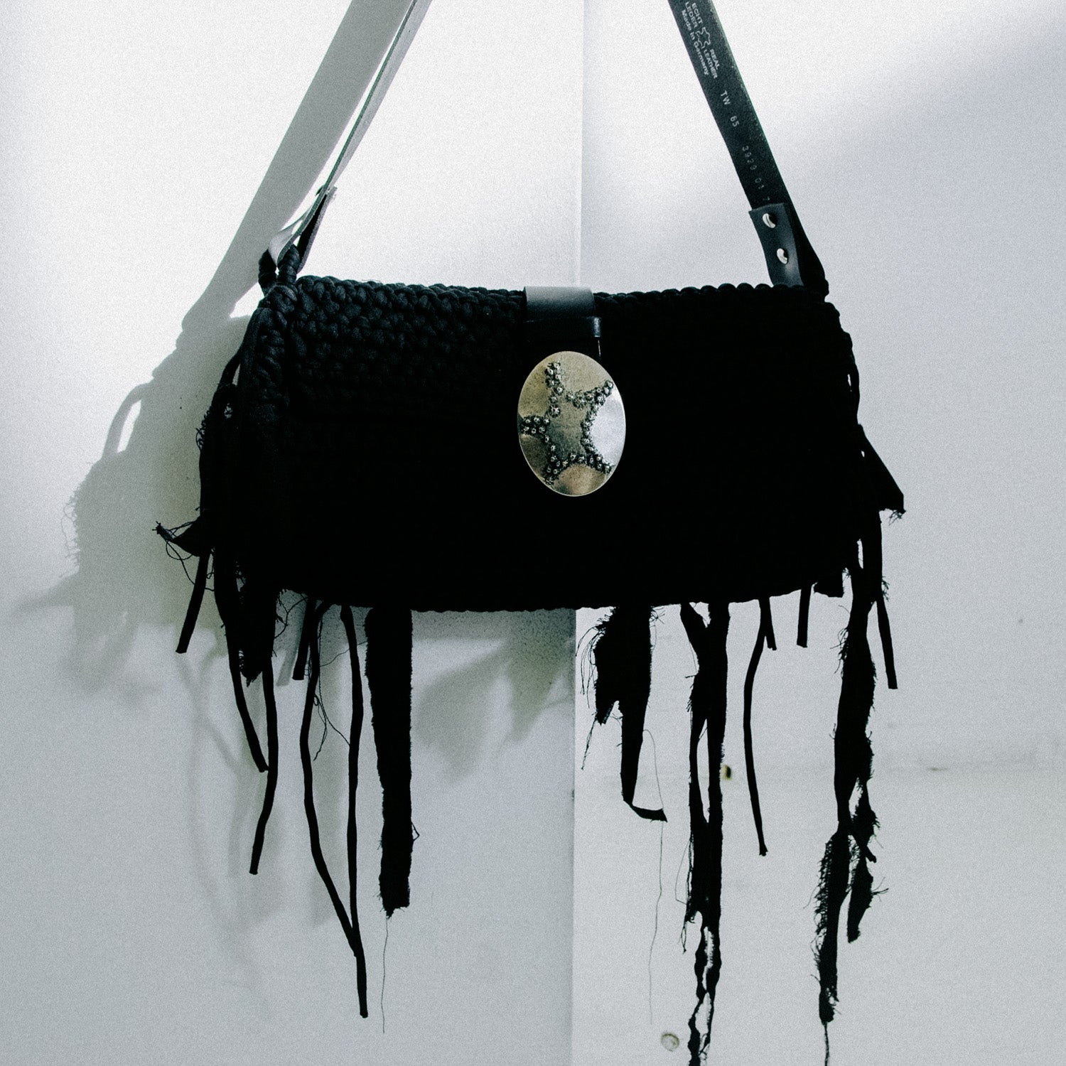 Our crocheted Blackbelt Bag is a carefully selected product, where every item is unique. The buckle and the handle are each handpicked vintage belts from second hand shops and fleamarkets. We love to give old products a second life and see them shine on our bags. Both the crocheting and the workmanship of the belts are 100% made by hand.